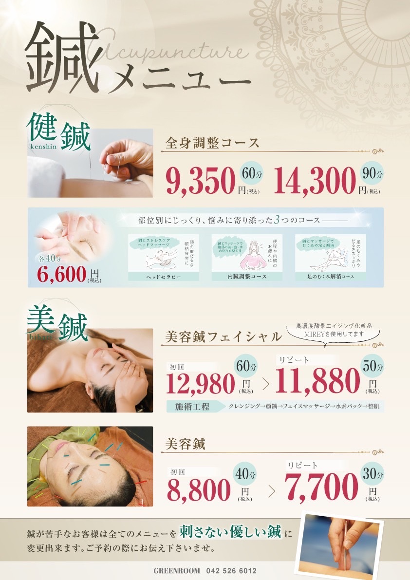 ※全てのメニューを《刺さない優しい鍼》に変更できます