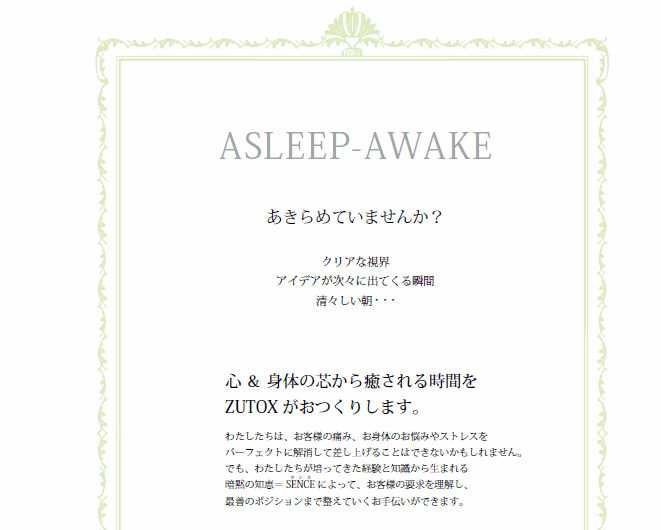 スタッフ:当店オリジナルのZUTOX(ズトックス)は、頭の再活性を目的としたメニューなのですが、頭がスッキリしなかったり、疲れが取れないことでお悩みですか?