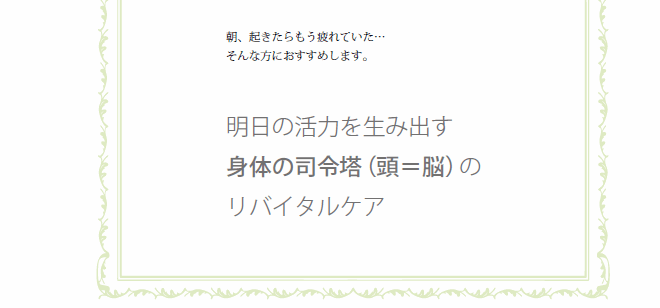 目の疲れ、疲労回復、代謝の促進、活力向上、エイジングケアなどにも効果的なリバイタルケアメニューをレポートします!