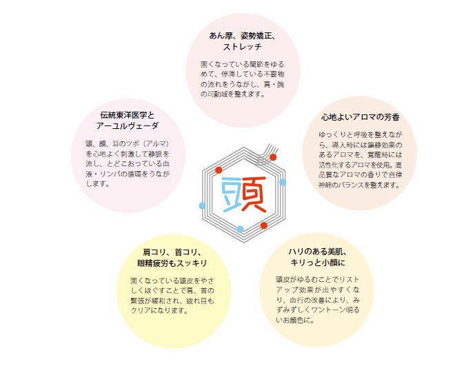 頭だけでなく、顔、首、肩、背中まで細かく丁寧にケアしていただけたのもお得感があり、良いと思います。
