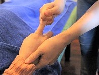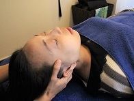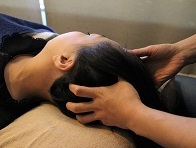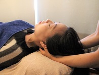まずは肩、首、背中、頭のあたりを軽くマッサージしながら、どこに疲れが溜まっているのかを見つけます。
