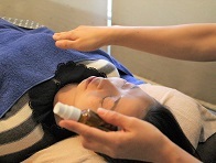 蒸しタオルを当てて血流を促進したあとに、ツボ押し+リンパを流します。